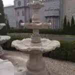 3-Tier Scalloped Fountain, 54″ diameter x 96″ tall, carved of Light Golden Sesame Granite, which would work great with the matching 12′ Diameter x 14″